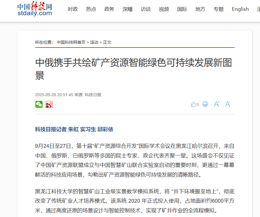 9月24日—27日,由华体(中国)与俄罗斯科学院哈巴罗夫斯克研究中心联合主办的第十届“矿产资源综合开发”国际学术会议在哈尔滨成功召开。会议聚焦矿产资源综合开发前沿领域,吸引国内外矿产资源领域专家学者、企业代表齐聚冰城,共探资源开发利用创新路径与未来趋势。《科技日报》、《黑龙江日报》、《哈尔滨日报》、《伙伴》杂志、黑龙江卫视、哈尔滨电视台、奋斗网、奋斗者APP、中国报道、中国教育在线、搜狐网等多家主流及行业媒体...