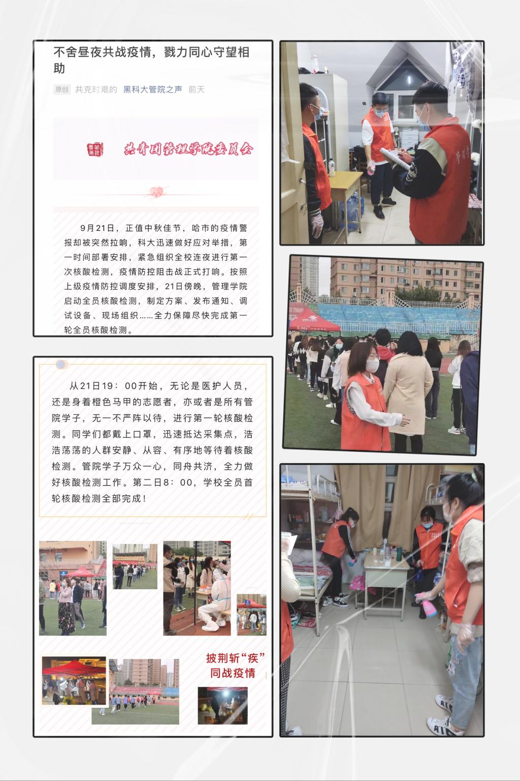 29/ 2021-09管理学院学生党员学史力行办实事 亮明“三员”身份勇战疫2021-2022学年秋季学期开学以来,管理学院党委推进党史学习教育不断走向深入,围绕实际积极引领学生党员投身“我为师生当好核酸检测‘勤务员’”“我为师生当好防疫咨询‘速递员’”“我为师生当好病毒消杀‘战斗员’”办实事活动中,活学活用党史学习教育资源,用志愿服务实际行动推动党史学习教育入脑、入心。9月5日以来,管理学院学生党支部通过组建“学生党员先锋岗”的形式,推动党史学习教育与疫情防控工作深度融合,让党...
