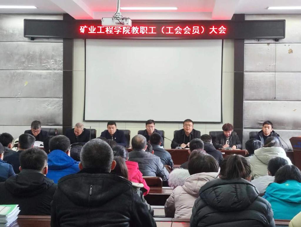 01/ 2023-03矿业工程学院召开教职工大会部署2023年度重点工作一年之际春为早,千秋伟业干当先。2月28日,矿业工程学院召开2023年度新学期教职工大会,会议由学院党委书记刘海涛主持,学院全体教师参加会议。会上,各位分管战线领导分别就分管工作做了安排部署。学院党委书记刘海涛传达了学校2023年度工作部署会议精神。学院院长肖福坤详细解读了学校《2023年党政工作要点》,简要回顾了学院过去一年在人才培养、科学研究、社会服务、师资队伍建设等方面取得的主要成绩,并结合实际,对学院...