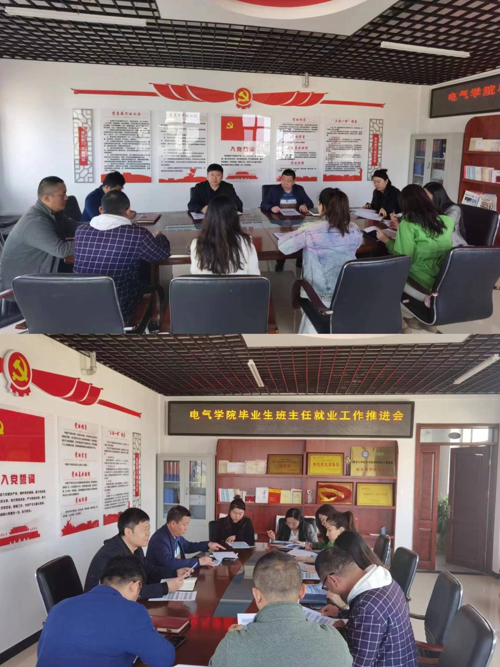 10/ 2023-05电气学院召开毕业生班主任就业工作推进会5月9日下午,电气学院在朝阳楼501会议室,组织召开毕业生班主任就业工作推进会。学院副院长李忠勤、全体毕业生班主任、就业工作辅导员参加会议。会议由学院党委副书记侯树成主持。会上,就业工作辅导员陈慧琦通报了截至到目前各班级的就业率。侯树成首先分析了学院当前就业工作存在的瓶颈问题,然后对学院近阶段的就业工作进行了安排和部署。同时,从“研究先行,提早研判”、“积极举措,营造氛围”、“观念驱动,分类指导”、...