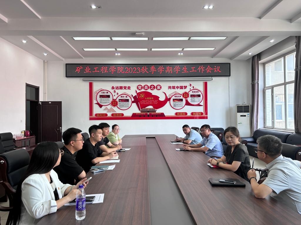 24/ 2023-08矿业工程学院召开2023年秋季学期学生工作会议8月22日,矿业工程学院组织召开了2023年秋季学期学生工作会议。矿业工程学院党委书记刘海涛,党委副书记李强,副院长商宇航,学工办主任刘星彤,全体辅导员出席此次会议。会上,书记刘海涛强调,学生工作的重要性如春花绽放,如夏日的雨露,呼唤着我们的关注与呵护;学生工作的特殊性如璀璨星空中的明珠闪耀,需要我们细心倾听与关怀;学生工作的阶段性如岁月的轮回,如季节的变迁,面对新挑战与机遇,我们要与时俱进,不断前行...