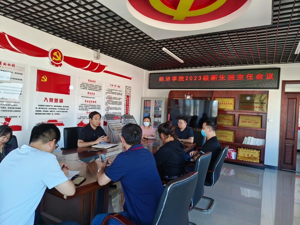 25/ 2023-08经济学院召开2023级新生班主任培训会议为进一步加强学院班主任队伍建设,充分发挥班主任在学生教育管理工作中的重要作用,做好2023级新生入学报到前的相关准备工作。8月23日下午,经济学院在朝阳楼0502召开2023级新生班主任工作培训。学院党委副书记邬丽群,学工办全体辅导员、2023级新生班主任参加了本次会议。会上,新生辅导员李笑晗分“报到前”、“报道中”、“报道后”三个时间段,对迎新工作做了细致安排,提醒做好新生抵校前的行程摸排工作、新生抵校当天的报...