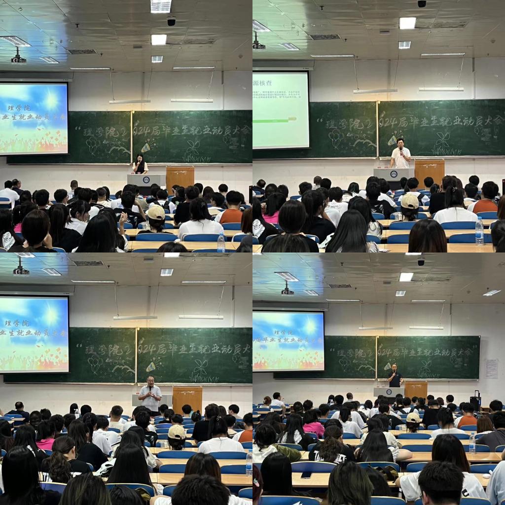 11/ 2023-09理学院召开2024届毕业生就业动员大会为了激发2024届毕业生的就业主动性和积极性,推动理学院就业工作,9月7日,学院召开了2024届毕业生就业动员大会。学院党委书记贺龙军、全体辅导员及全体2024届毕业生参加了会议。会议由学院团委书记李威燃主持。会上,辅导员刘鑫鹏向全体毕业生详细讲解了就业云平台网签的操作流程,现场指导毕业生如何进行生源核查,并建议毕业生转变就业观念,先就业后择业。学工办主任赵永明要求全体毕业生要关注学校发布的就业信息,尽快“...