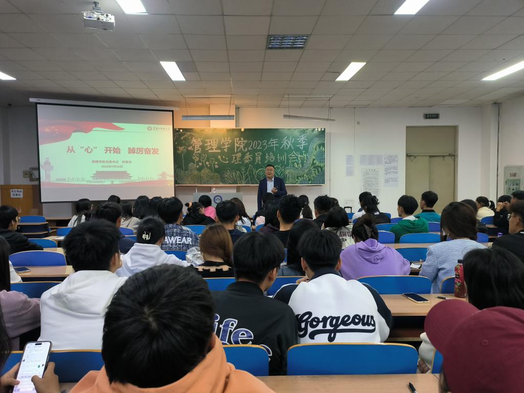 09/ 2023-10从“心”开始,踔厉奋发 管理学院开展2023年秋季心理委员培训会为提高学院心理健康教育工作质量,充分发挥心理委员在朋辈心理辅导的优势和作用,积极响应《华体官网网页版第三届“久爱我·Three-Double”9·25大学生心理健康教育活动方案》,管理学院于近期在主楼WN0303教室开展了2023年秋季心理委员培训会。本次培训会由管理学院党委书记何景洋主讲,学院全体心理委员参加了本次培训会。何景洋巧妙结合“二十四节气”,用通俗易懂的语言和生动形象的范例,点出“从“心”开始,踔厉奋发”的培...