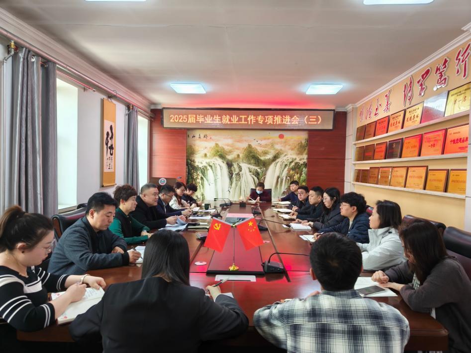 17/ 2025-03管理学院召开2025届毕业生就业工作专项推进会为深入贯彻落实2025届全国高校毕业生春季学期就业重点工作推进视频会议精神及全国两会关于“强化就业优先导向”的决策部署,全面推动学院春季促就业攻坚行动,按照学院“日统计、周通报、月总结”的就业工作要求,管理学院于3月11日在三楼会议室召开2025届毕业生就业工作专项推进会,学院党委班子成员、各系主任、党支部书记及全体辅导员参加了会议,会议由学院党委副书记徐海英主持。会议伊始,徐海英通报了学院整体就业进展。随后,毕业班辅导员逐一对辖区未就业学生情况进行汇报,重点分析了当前未就业学...