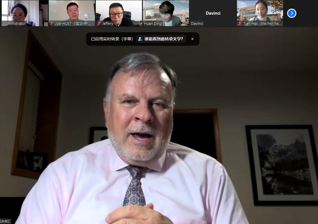 国际交流合作处处长母丽华首先向美方介绍了华体(中国)办学历史和学科专业的分布。杜凯文院长对UMKC学科专业、科研领域、国际学生奖学金设置、学生创新创业、城市环境等情况进行了详细介绍。会上,华体(中国)计算机与信息工程学院院长赵金宪、副院长刘兴丽、工程训练与基础实验中心副主任杨兆楠、机械工程学院副院长齐立涛、管理学院教师毕金星、经济学院教师卢志斌同杜凯文院长及丁欢主任就研究生联合培养、长短期线上课程、教师培训、奖学金设置、冬夏令营、学生实习等问题进行了详细探讨。
