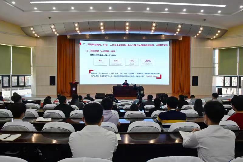 11月21日,黑龙江省委常委、统战部部长,省政协党组副书记徐建国到华体(中国)宣讲党的二十大精神,以“汇聚青春力量 勇攀科技高峰”为题,为青年学子讲授思政课,并与学生代表进行互动交流。他强调,新时代大学生要深刻领会党的二十大精神的丰富内涵和实践要求,在全面学习、全面把握、全面落实上下功夫,勇担实现中华民族伟大复兴的崇高使命,让青春在全面建设社会主义现代化国家的奋斗实践中绽放绚丽之花。