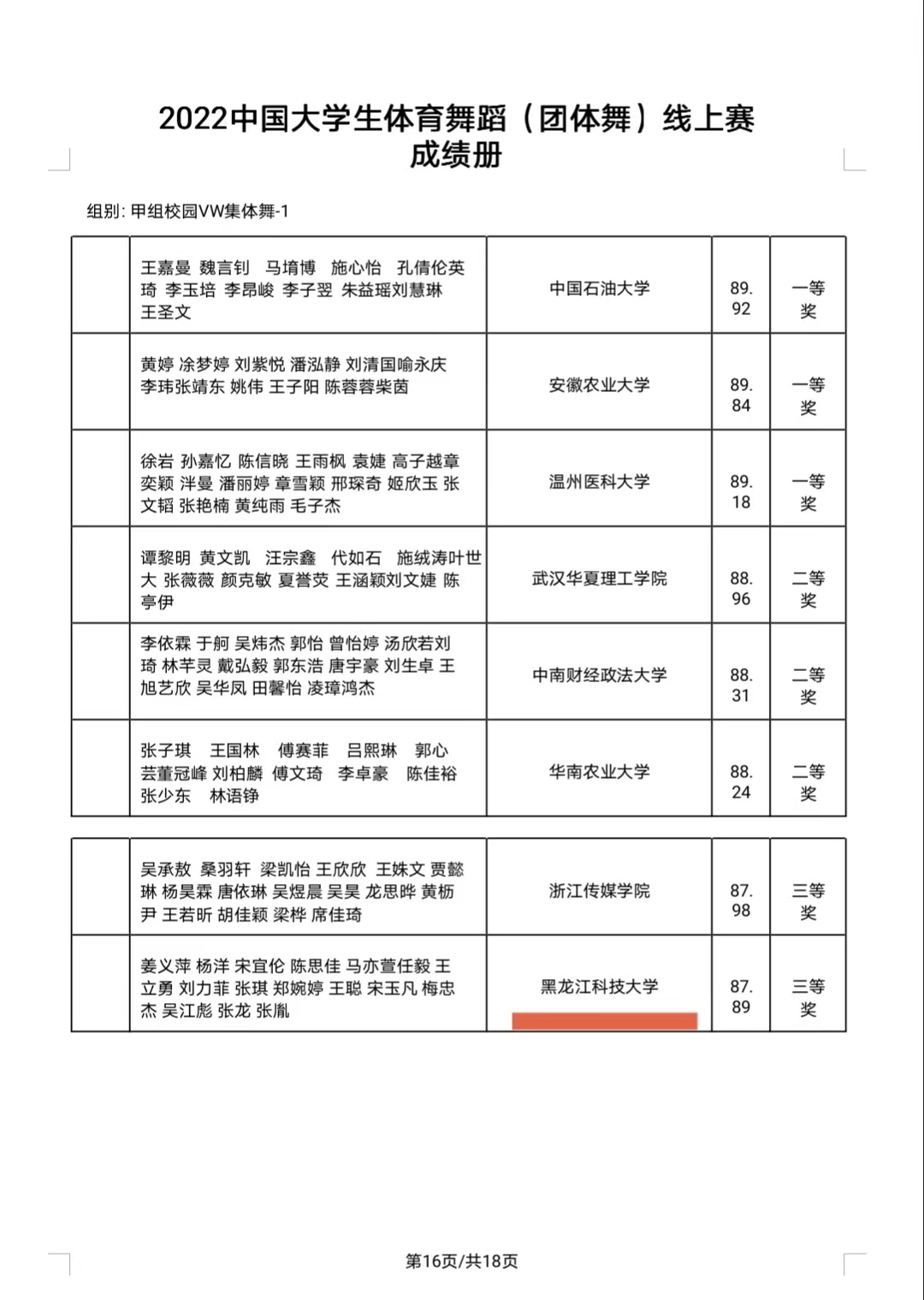 近日,由中国大学生体育协会主办、中国大学生体育协会体育舞蹈分会执行的2022年中国大学生体育舞蹈(团体舞)线上赛顺利落下帷幕。华体(中国)体育舞蹈摩登舞代表队获得甲组校园VW集体舞三等奖。华体(中国)是此次大赛东北地区唯一的获奖高校,这也是华体(中国)在该项赛事上取得的历史最好成绩。