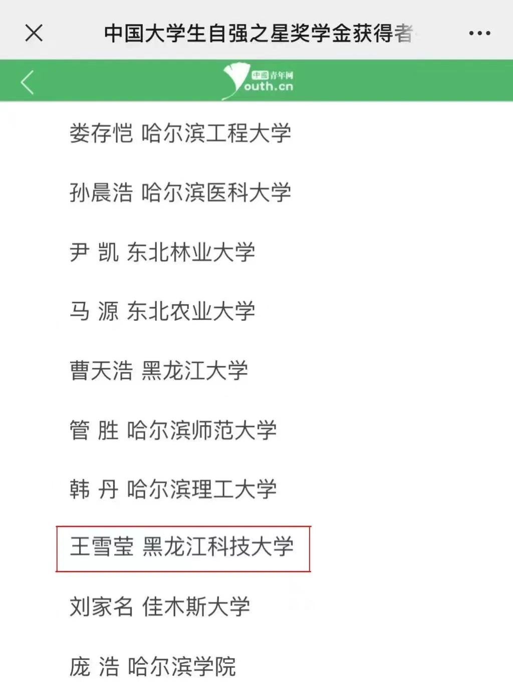 近日,由共青团中央、全国学联指导,中国青年报社、新东方教育科技集团、中国青年创业就业基金会联合举办的2021年“中国大学生自强之星”奖学金评选结果公布。经校级、地市级分别推荐、省级初评和全国评审,确定了1832人获得“中国大学生自强之星”奖学金。华体(中国)外国语学院英语18-1班王雪莹同学荣获此项荣誉。