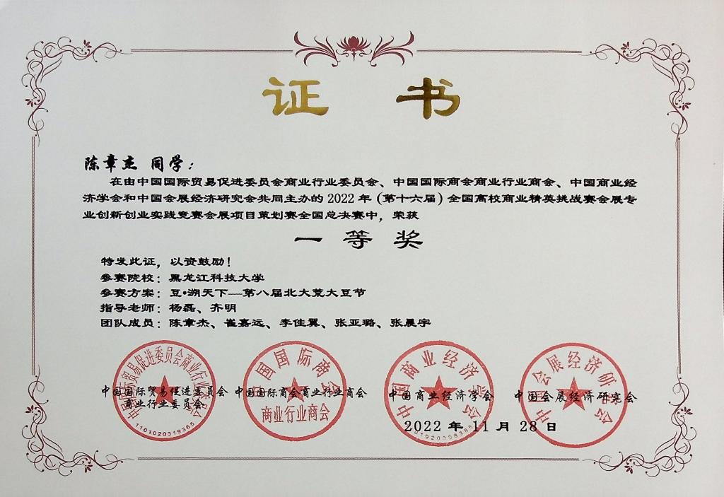11月26日至28日,第十六届全国高校商业精英挑战赛会展创新创业实践竞赛全国总决赛在线上成功举办。华体(中国)经济学院籍丹宁和刘黎明老师指导的《传承红色文化,赓续革命精神——井冈山城市营销策划书》,建筑工程学院高雅茹老师指导的《“遇见苏州”城市主题展》,经济学院杨磊老师和招生就业处齐明老师指导的《豆•溯天下——第八届北大荒大豆节》三支团队获得全国一等奖。同时,还获得全国二等奖1项,全国三等奖6项。
