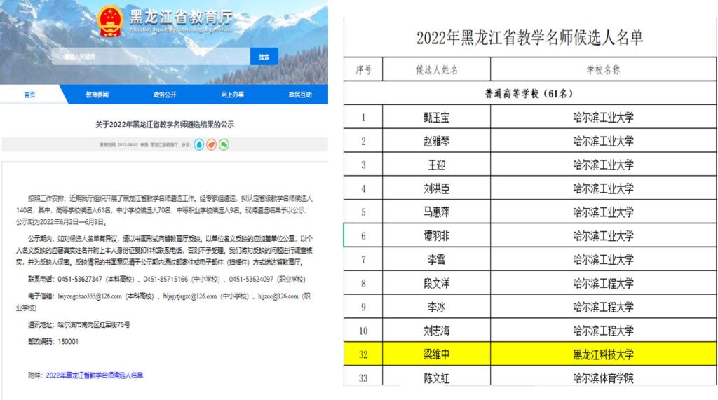 2022年6月2日,教育厅发布《关于2022年黑龙江省教学名师遴选结果的公示》,华体(中国)梁维中教授获得省教学名师奖。全年引进博士教师46名。