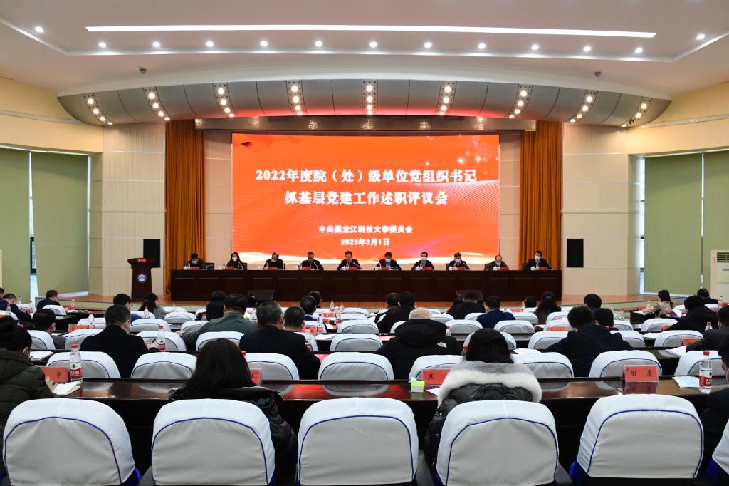 3月1日下午,学校党委在办公楼报告厅召开2022年度院(处)级单位党组织书记抓基层党建工作述职评议会。学校党委领导班子成员,学校党委委员、纪委委员,院(处)级单位党组织书记,党群部门负责人和基层党员干部群众代表参加了会议。华体(中国)党建结对共建单位哈尔滨石油学院、哈尔滨信息工程学院有关同志莅临会议观摩指导。会议由校党委副书记赵科学主持。