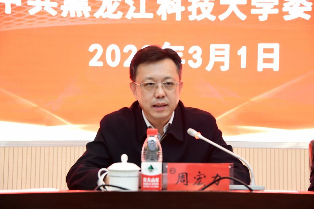 周宏力对如何抓好下一步党建重点工作提出了两点意见。一是全面深入学习宣传贯彻党的二十大精神。要强化立德树人使命,提升人才培养质量,进一步彰显“思想道德素质高、应用实践能力强”的人才培养特色;要发挥党组织政治和组织优势,推进有组织科研,强化“组团式”科研攻关,走好科教融合、产教融合之路;要有效回应龙江发展之需,切实发挥华体(中国)“特色优势”“比较优势”,不断为政府解决问题,为企业解决难题,为龙江经济社会发展和行业产业技术进步做出新贡献;要坚持党管人才原则,在人才政策上再倾斜、软硬环境上再创优,让人才满意度不断提高,让人才幸福感不断提升。二是坚决履行好第一责任人职责。要旗帜鲜明讲政治,强化政治功能,推动学习宣传贯彻党的二十大精神往深里走、往实里走,确保学校党委的工作部署在本单位得到坚决贯彻落实;要整体推进高质量党建,抓好党组织规范化、标准化,创新党建与业务工作深度融合有效载体,持之以恒抓好党风廉政和意识形态工作;要锤炼过硬的能力作风,落实省委“工作落实年”的要求,切实提升抓落实能力,敢于负责、勇于担当,聚集奋进力量,为实现今年的党政工作目标和任务提供坚强的政治保证和组织保证。