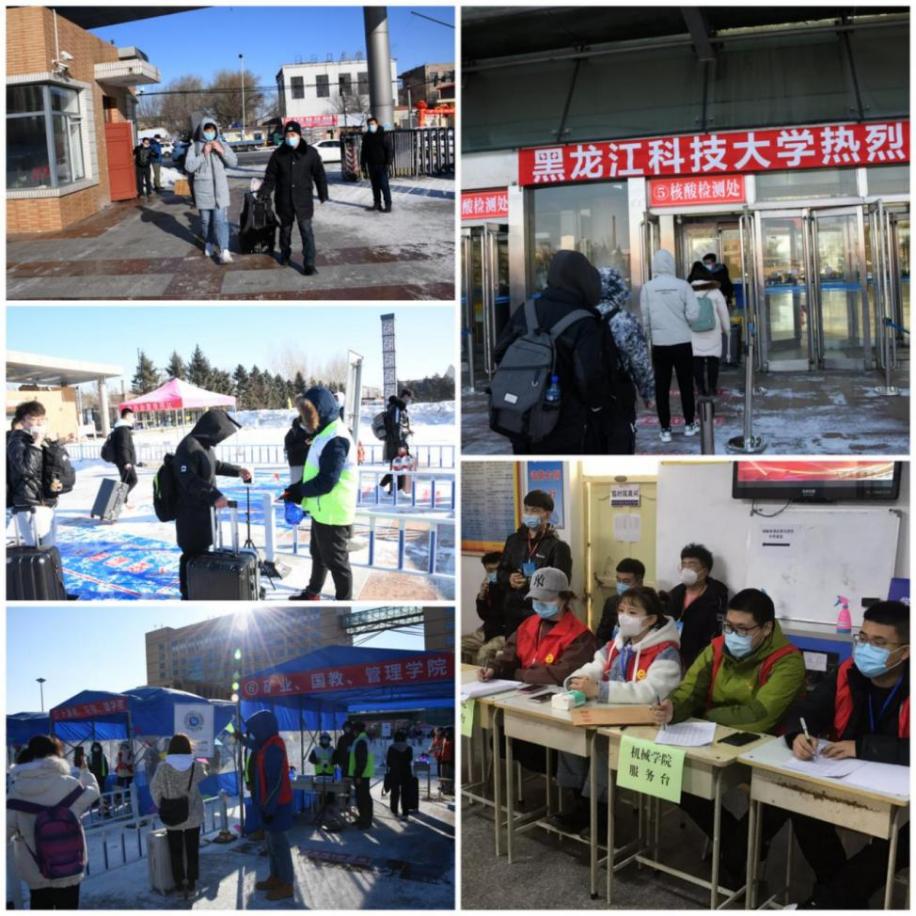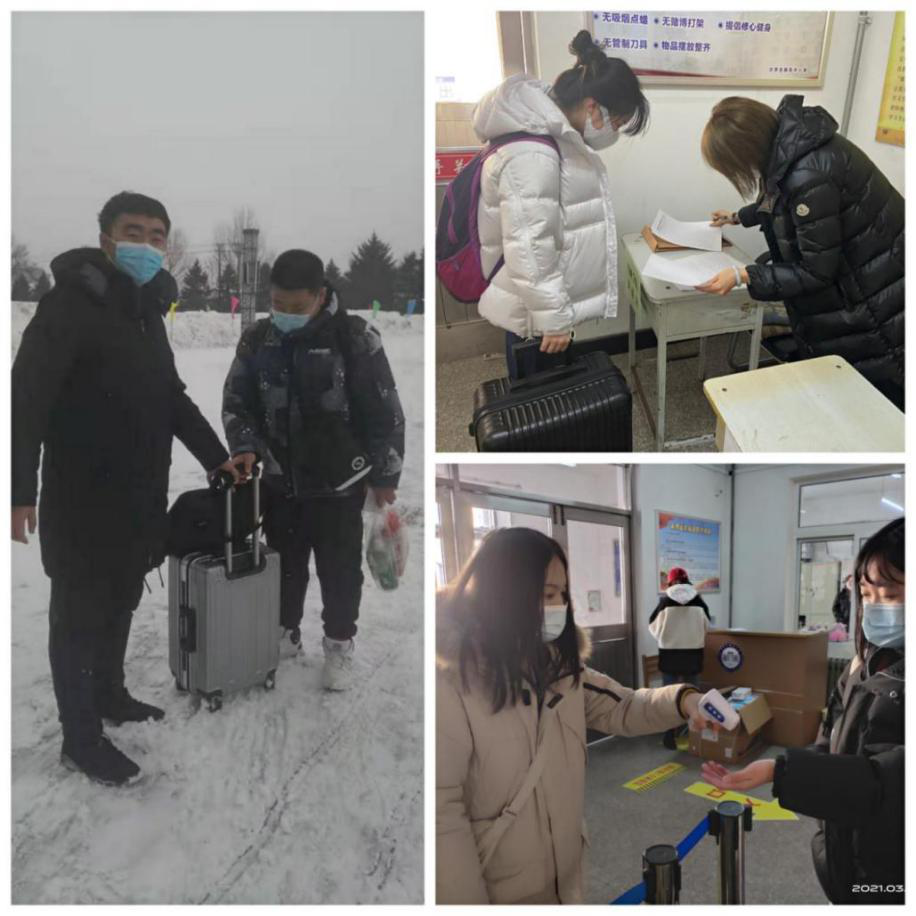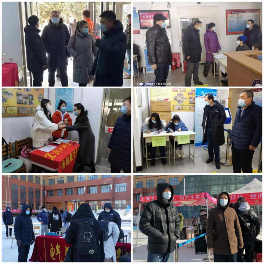 用情真付出,关心爱心迎接学生温暖入校。学生返校前,后勤处组织清扫校园积雪,资产处为每名学生发放了10个口罩,校团委积极营造宣传氛围,保卫处协调确保校外交通顺畅,学生处对学生公寓进行全面消杀,张贴返校入住须知和发热病例应急处置流程图,提高返校学生安全防护意识和防护能力,共同营造安全有序的校园环境。面对严寒雨雪天气和超长工作时长的现实困难,学校为工作人员和学生准备了热豆浆、行李转运车、热帖、暖手袋,为提前到校学生提供隔离等待教室,面对严寒细心入微的照顾返校学生。全体专职学生工作干部主动担当、全心付出,根据学生到校情况延长接待时间,住校有序组织解除隔离等待,每天仅仅休息4-5个小时......他们用实际行动再次展现了专职学生工作干部“特别能吃苦、特别能战斗、特别能奉献”的工作状态,展现了专职学生工作干部面对“急、难、险、重”工作任务的组织力和执行力。