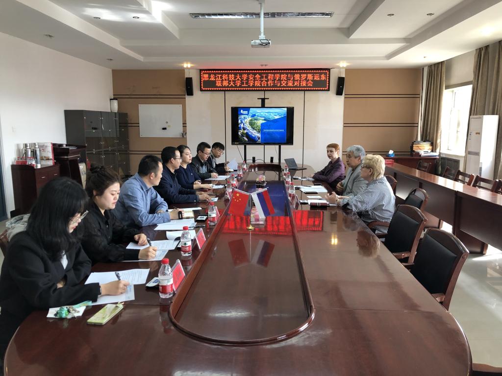 在安全工程学院,学院院长徐锋,副院长张迎新、沈斌与俄罗斯远东联邦大学一行召开了国际合作与交流对接会。双方就各自学院情况、专业特色进行了介绍,并对双方合作意向交流了意见,就安全工程专业和应急技术与管理专业本科生现场认识实习、联合指导本科生毕业设计、举办毕业设计展览、学术交流、科技项目合作、引进外国专家等事宜进行了具体磋商和对接。进一步促进了安全工程学院国际合作与交流平台的搭建,为拓宽师生的国际视野,开展国际化人才培养提供了坚实的保障。