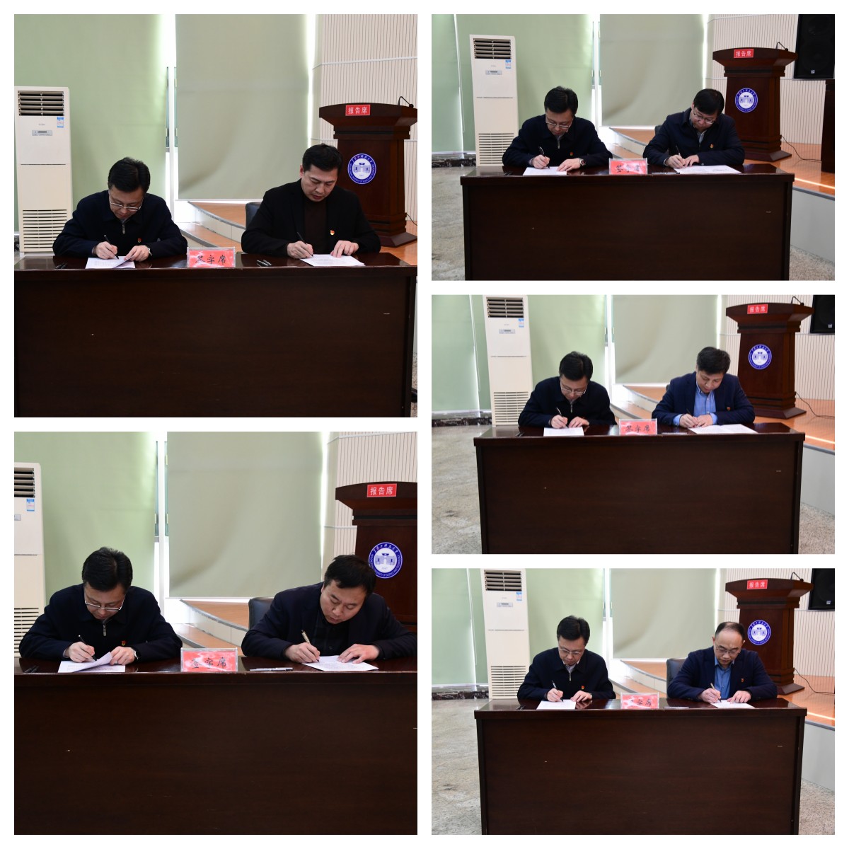 校党委书记周宏力代表学校党委分别与财务处、后勤管理处、矿业工程学院、人文社会科学学院、理学院等5个基层单位代表签订了《2023年全面从严治党暨党风廉政建设责任书》。