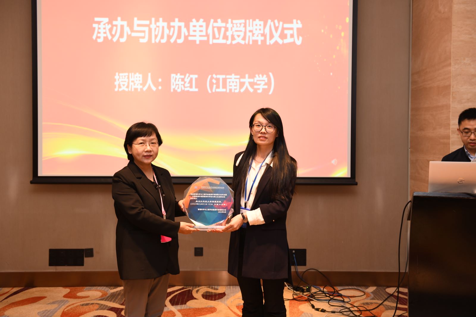 闭幕式上,管理科学与工程学会能源环境管理分会主任委员、江南大学国家安全与绿色发展研究院院长、华体(中国)管理学院特聘教授陈红为华体(中国)管理学院等此次年会承办与协办单位颁发了荣誉牌匾。