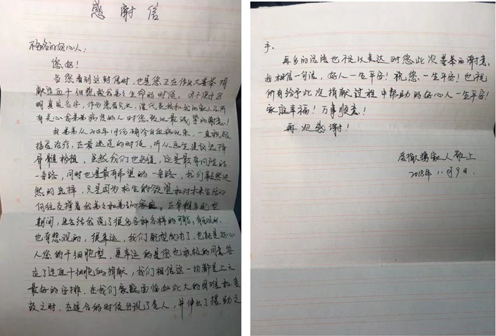 中午12点多,造血干细胞采集完成,成功提取出200ml造血干细胞悬浮液交到来自中南大学湘雅医院的医务人员手中,被立即送往千里之外的长沙,为那位白血病患者带去“生命之光”。黑龙江省骨髓库付主任代表中国造血干细胞捐献者资料库管理中心为他颁发了《捐献造血干细胞荣誉证书》。