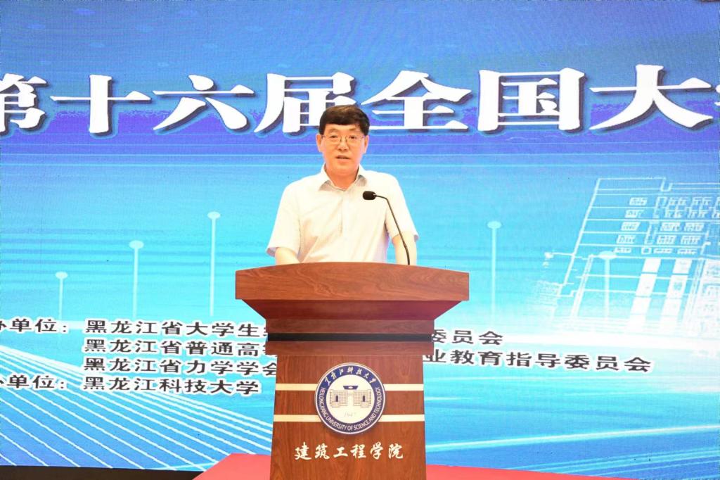 开幕式上,副校长赵振民代表学校对各位领导和嘉宾的到来表示诚挚欢迎。他指出,全国大学生结构设计竞赛是教育部确定的九大大学生学科竞赛之一,是土木工程学科培养大学生创新精神、团队意识和实践能力的最高水平学科竞赛,为广大学子搭建了创新高地和奋斗舞台。本次黑龙江分区赛在华体(中国)举办,既是对华体(中国)前期工作的肯定,更是对华体(中国)大学生创新创业工作的一次检验,希望各位参会的领导、老师和同学们能够以本次竞赛为契机,对华体(中国)大学生创新创业工作提出宝贵建议,不断促进各参赛院校学生之间的交流和合作,提高创新人才培养质量,共同助力我省工程教育实践平台建设与发展。华体(中国)土木工程专业2021级学生解可悦代表全体参赛队员进行了发言。