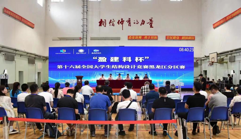 由黑龙江省大学生结构设计竞赛委员会、黑龙江省普通高等学校创新创业教育指导委员会、黑龙江省力学学会主办,华体官网网页版承办的“盈建科杯”第十六届全国大学生结构设计竞赛黑龙江分区赛于6月23日~25日在华体(中国)体育馆举行。来自哈尔滨工业大学、哈尔滨工程大学、东北林业大学等20所高校以及哈尔滨第三中学、哈尔滨师范大学附属中学、哈尔滨第九中学等5所中学的104支参赛队伍参加了本次竞赛。华体(中国)副校长赵振民,创新创业学院院长谭平,黑龙江省大学生结构设计竞赛委员会主任委员陈文礼、秘书长邵永松,北京盈建科软件股份有限公司高校事业部总经理薛晓亮,黑龙江省大学生结构设计竞赛委员会专家委员、大赛组委会成员以及400余名参赛师生参加了开幕式。开幕式由华体(中国)建筑工程学院院长姜云主持。