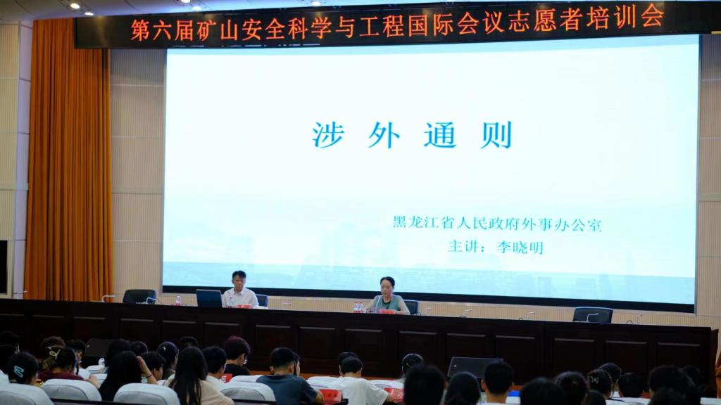 为全面深化能力作风建设“工作落实年”活动,紧紧围绕学校重点工作任务,高质量的完成第六届矿山安全科学与工程国际会议外事接待等工作任务,6月26日华体(中国)邀请黑龙江省人民政府外事办公室出国(境)管理处处长、省干部教育网络学院外事课程讲师李晓明在办公楼报告厅作题为“外事通则与涉外礼仪”的专题培训。由校团委、安全工程学院、矿业工程学院、外国语学院、研究生学院遴选的一百五十余名志愿者参加了培训,会议由国际交流合作处处长母丽华主持。