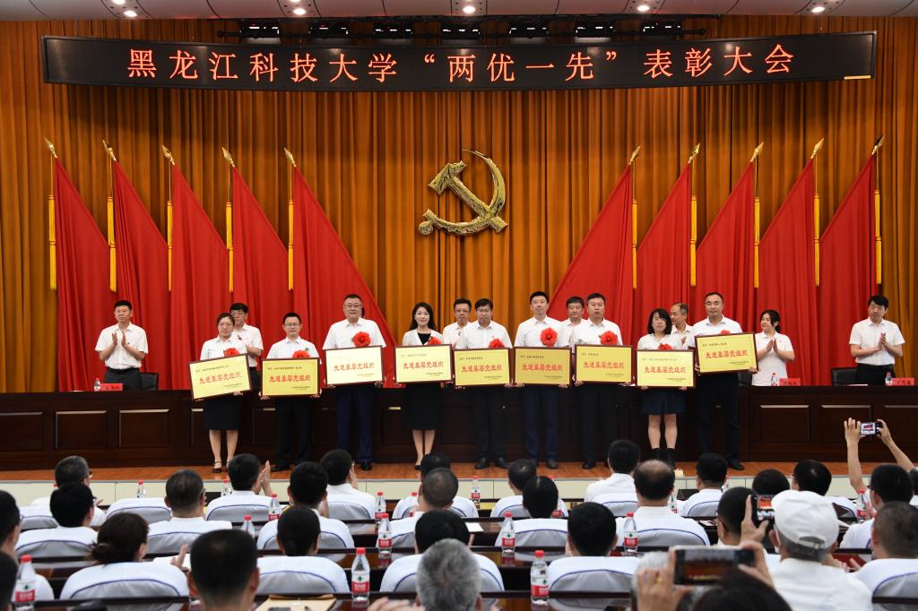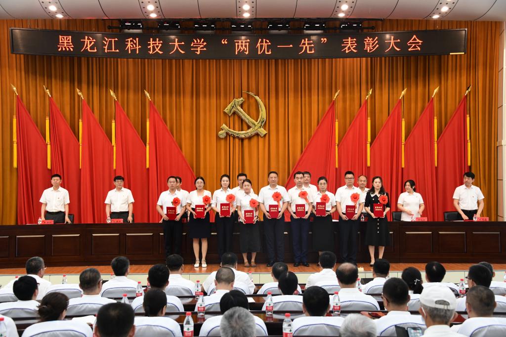 上午10时,大会在庄严的国歌声中正式开始。会上,校党委副书记桑玉军同志宣读了学校党委《关于表彰优秀共产党员、优秀党务工作者和先进基层党组织的决定》。学校党委决定:授予于洪伟等145名同志“优秀共产党员”荣誉称号;授予王立新等21名同志“优秀党务工作者”荣誉称号;授予矿业工程学院党委等24个基层党组织“先进基层党组织”荣誉称号。与会领导班子成员为受表彰的先进集体和先进个人代表颁奖。