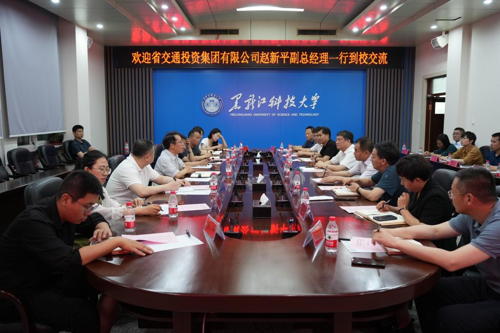 7月6日下午,省交投集团副总经理赵新平带队,省交投集团石墨产业事业部总经理、黑龙江诺康石墨新材料科技有限公司执行董事张文胜,总经理胡浩一行来校考察调研,校长孟上九热情接待赵新平一行。
