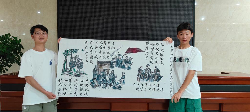 绘画卷,抒发青春豪情。实践团成员在学习调研后,围绕“朱德挑梁”“红米饭南瓜汤”等主题,通过书法、绘画等形式创作了一批文化作品,抒发了对井冈山历史的深切缅怀,表达了对美好未来的无限期许,彰显了华体官网网页版青年的坚定信念,展现了华体官网网页版学子的青春豪情。