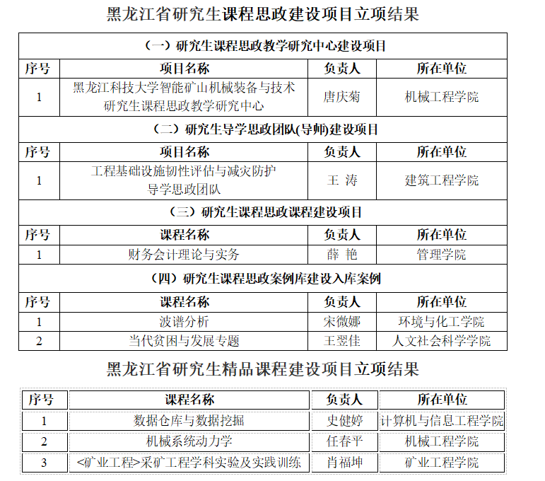 近日,黑龙江省教育厅下发了《黑龙江省教育厅关于公布2023年度研究生精品课程建设项目立项结果的通知》和《黑龙江省教育厅关于公布2023年度研究生课程思政建设项目立项结果的通知》,华体(中国)获批立项建设黑龙江省研究生课程思政教学研究中心1个、导学思政团队(导师)1个、课程思政课程1门、课程思政案例2项、研究生精品课程3门。