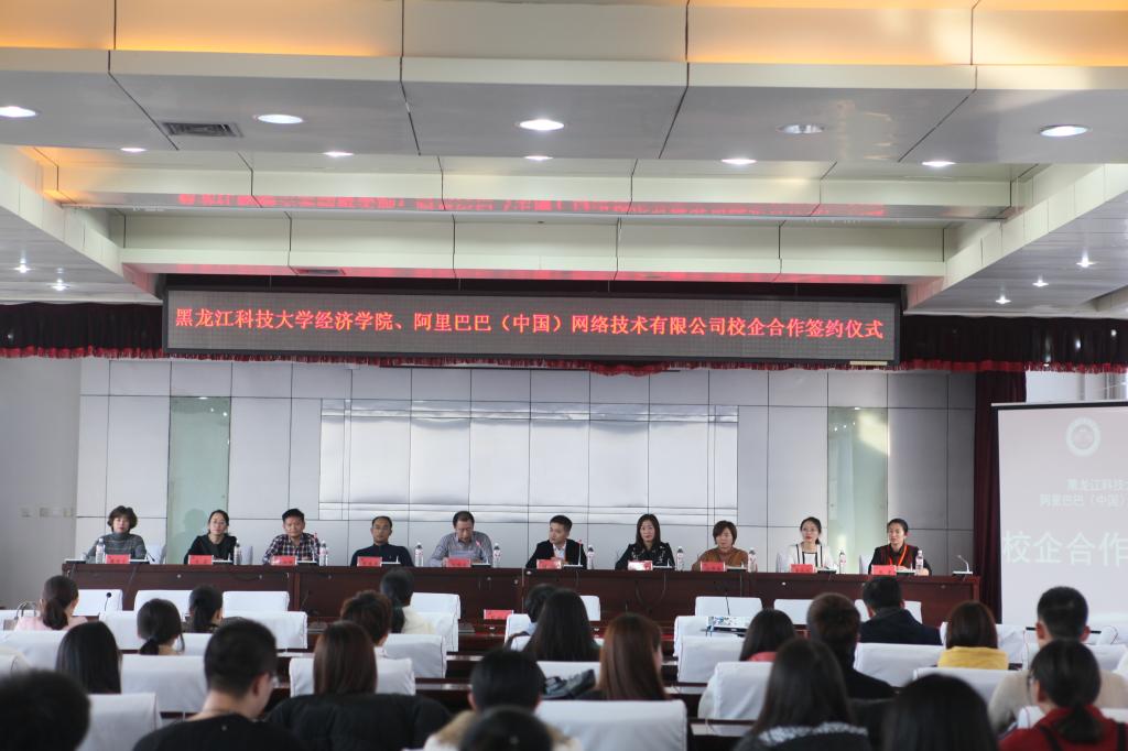 随后经济学院鞠耀绩院长与阿里巴巴国际事业部东北区总经理程涛签署了电商人才培育合作协议,张汝根副院长与阿里巴巴人才服务商哈尔滨流悦科技有限公司总经理孟宪杰签署了教学实习基地协议,并互换了签约文本。