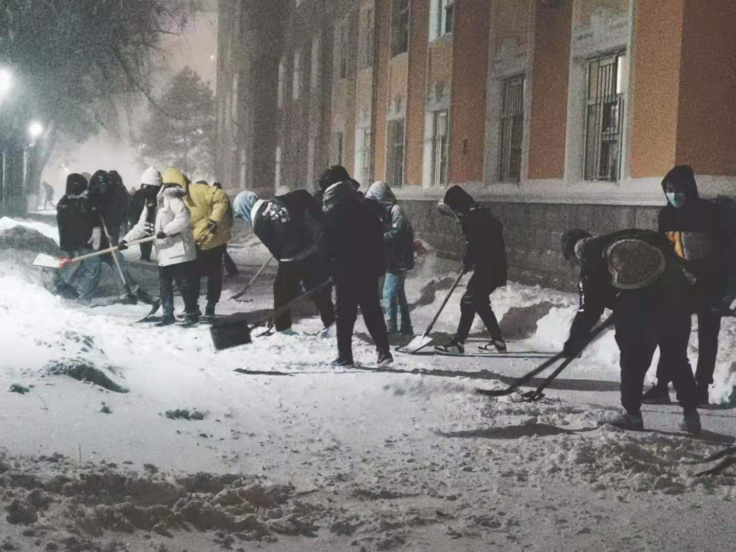 11月19日凌晨,暴风雪来袭,哈尔滨主城区降雪量达30毫米以上,是多年来少有的降雪量。全校学生从11月19日清晨开始打响迎战暴风雪“战役”,两万余名学生顶风冒雪、不畏严寒,利用早、中、晚时段高质量、高标准、高效率完成分担区清雪工作,确保校园交通顺畅和师生正常出行。