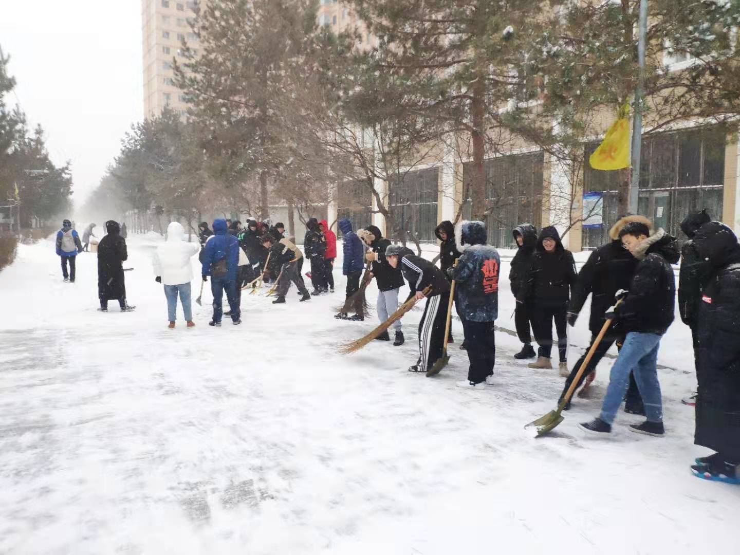 学生参与校园清雪是青年学生勇于担当和志愿服务精神的直接呈现。无论是在边陲鸡西,还是在省城哈尔滨,学校“五四四”德育目标培养和影响了一代又一代华体官网网页版学子,形成了勇于担当和勤于实践的“华体官网网页版”标识。当暴风雪与华体官网网页版相遇,铁锹、雪铲、雪推、扫帚与雪碰撞的感人“乐章”响彻华体官网网页版校园,扫雪现场同学们齐心协力、互帮互助、精诚合作的场面不断呈现,这就是新时代青年志愿服务精神的真实写照。