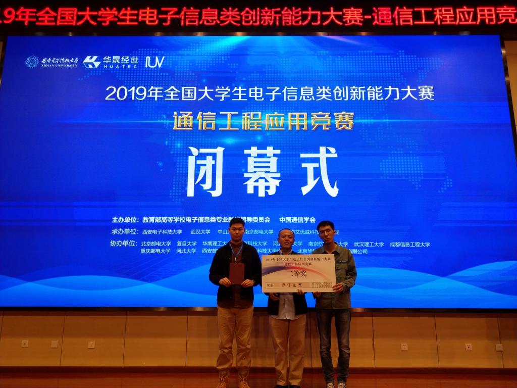11月4日,华体(中国)电子与信息工程学院通信工程专业学生黄轶铂、罗小瑞获得由教育部主办的“2019年全国大学生电子信息类创新能力大赛-通信工程应用竞赛”全国二等奖并获4000元奖金。