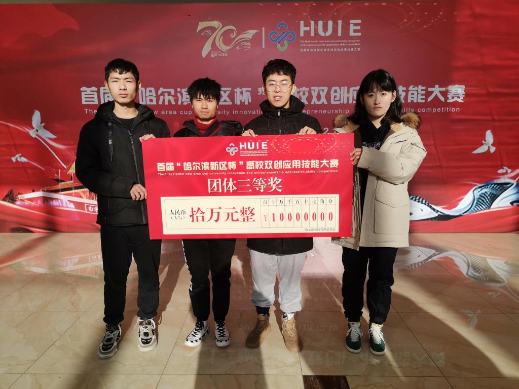 由哈尔滨新区管理委员会主办的首届“哈尔滨新区杯”高校双创应用技能大赛于12月15日在黑龙江职业技术学院圆满落幕。在本届大赛中,华体(中国)代表队荣获大赛团体三等奖,并获得10万元奖金。