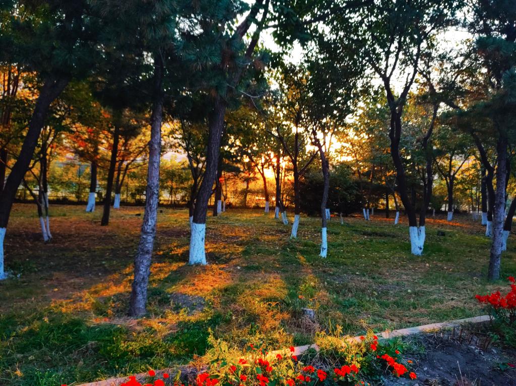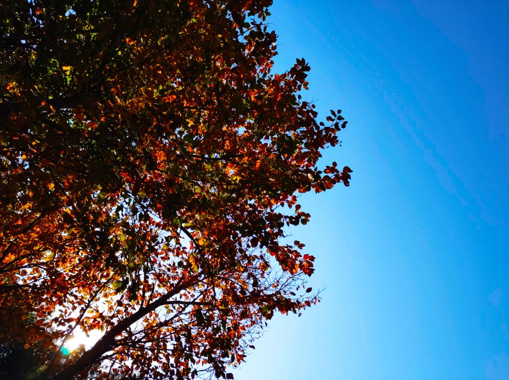 云销雨霁,秋水长天。满溢着秋日晴空的清朗,由枝叶之间散射下来的阳光,洒下一地斑驳的希望。