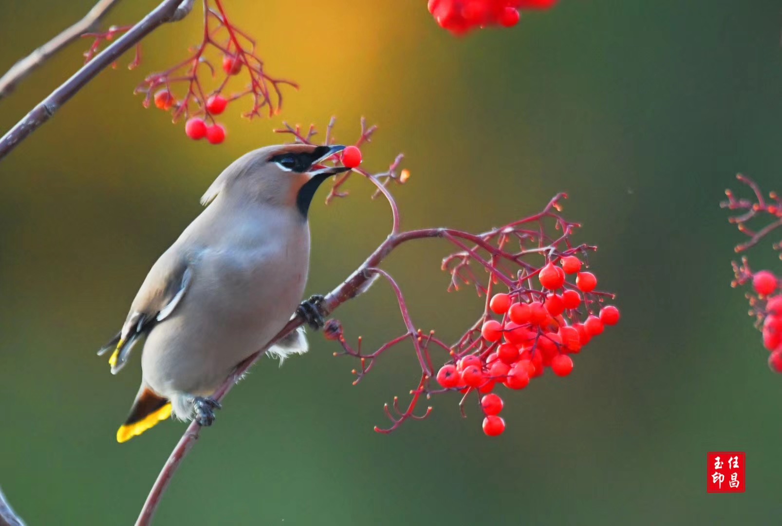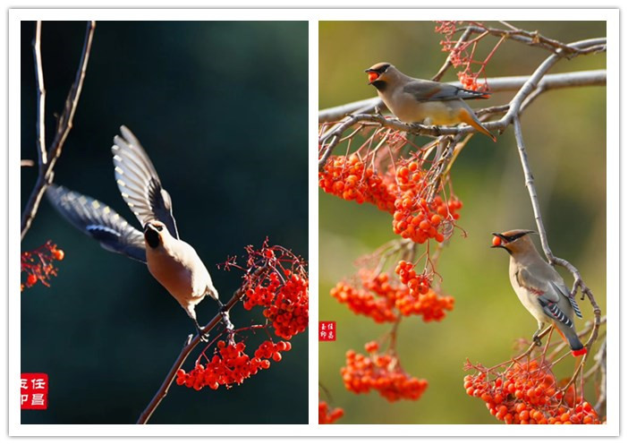 太平鸟徜徉枝头,采撷秋天的果实。