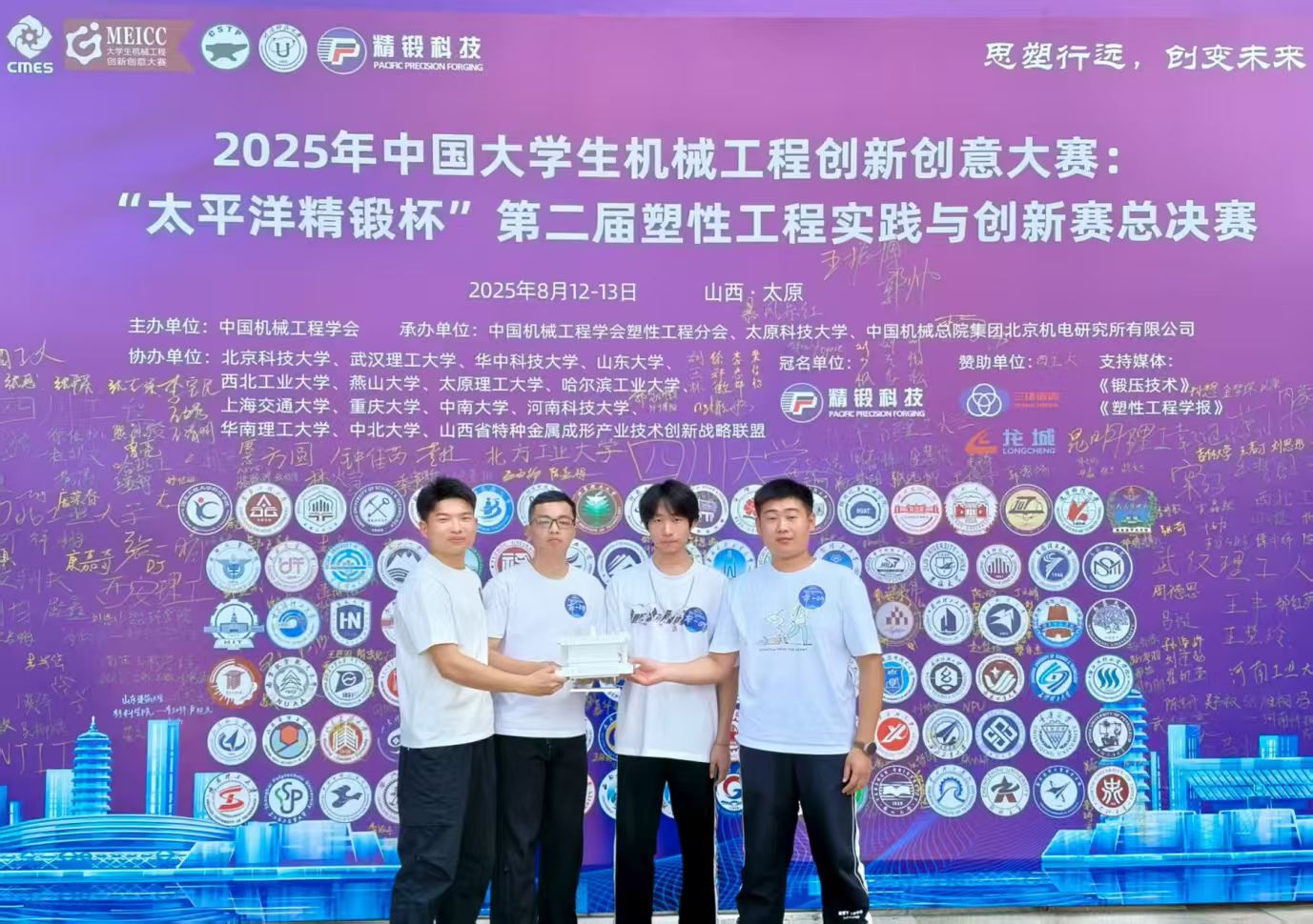 近日,2025年中国大学生机械工程创新创意大赛:“太平洋精锻杯”第二届塑性工程实践与创新赛总决赛在太原科技大学顺利举办。大赛共吸引了哈尔滨工业大学、西北工业大学、华中科技大学等全国103所高等院校的523支参赛队伍。经过资格审查、校赛和区域赛,最终有153支队伍参加了总决赛。华体(中国)团队成功晋级全国总决赛,获得国家级三等奖。