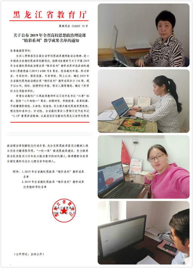 为深入贯彻落实全国全省学校思政课教师座谈会精神,进一步推进全省高校思政课创新创优,省教育开展了全省高校思想政治理论课“精彩系列”教学成果评选活动。日前,省教育厅公布了评选活动结果,共有156 项教学成果获奖。华体(中国)马克思主义学院有4项教学成果在评选活动中脱颖而出,斩获殊荣。其中,李英粉老师的马克思主义基本原理课程讲义、孔祥艳老师的毛泽东思想与中国特色社会主义理论体系概论课程讲义被评为“精彩讲义”;连永新老师的中国近代史纲要课课件被评为“精彩课件”;孙红老师的中国近代史纲要课案例分析被评为“精彩案例”。