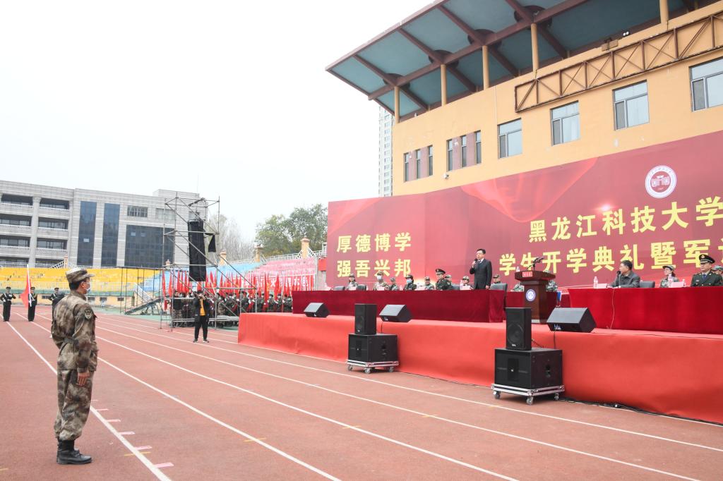 校党委副书记、军训团政委于成学做军训动员讲话。他强调全体新生要通过军事训练和入学教育厚植家国情怀,筑牢国防安全意识;锤炼顽强意志,培养艰苦奋斗精神;锻造砥砺品格,增强组织纪律观念;实施科学训练,确保军训圆满成功。全校各单位要严格落实疫情防控措施,强化学生教育管理,加强军训服务保障,扎实推进各项训练任务落实。