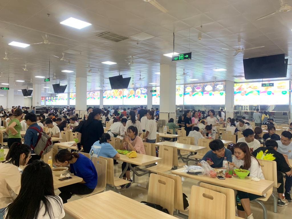 宽敞明亮的新食堂在开学第一天试运行