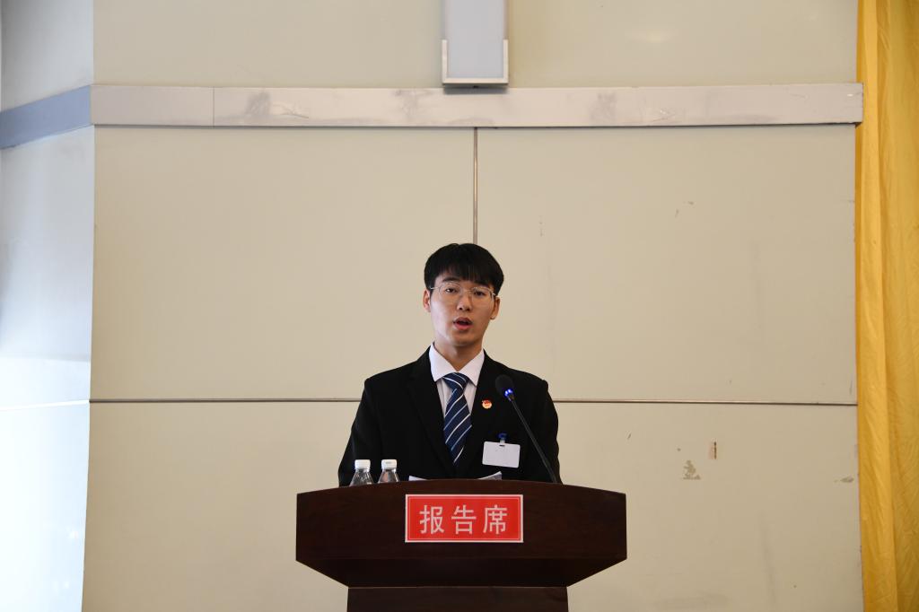 随后,省学联驻会执行主席邵秋楠致辞,代表省学联向大会召开表示热烈的祝贺。校学生会执行主席张辉东同学代表华体官网网页版第二届学生委员会做了题为《勇于自我革命服务同学成长奋力开启新时代青春成才奋斗新篇章》的工作报告。研究生会执行主席常帅同学代表华体官网网页版第一届研究生委员会做了《引领凝聚青年勇担时代大任为创建矿业特色鲜明的高水平应用型科技大学贡献青春力量》的工作报告。
