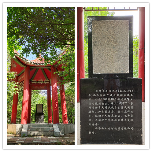 此碑系民国二年(公元1913年)哈尔滨糖厂建设时期的奠基石。公元2002年10月兴建教学主楼时挖掘出土,碑上“凌霄”二字为时在奉天省民政厅官员谈国楫敬题。为承前启后,就此立碑建亭,以励今人壮志凌云,气冲霄汉,为实现中华民族的伟大复兴而奋斗。