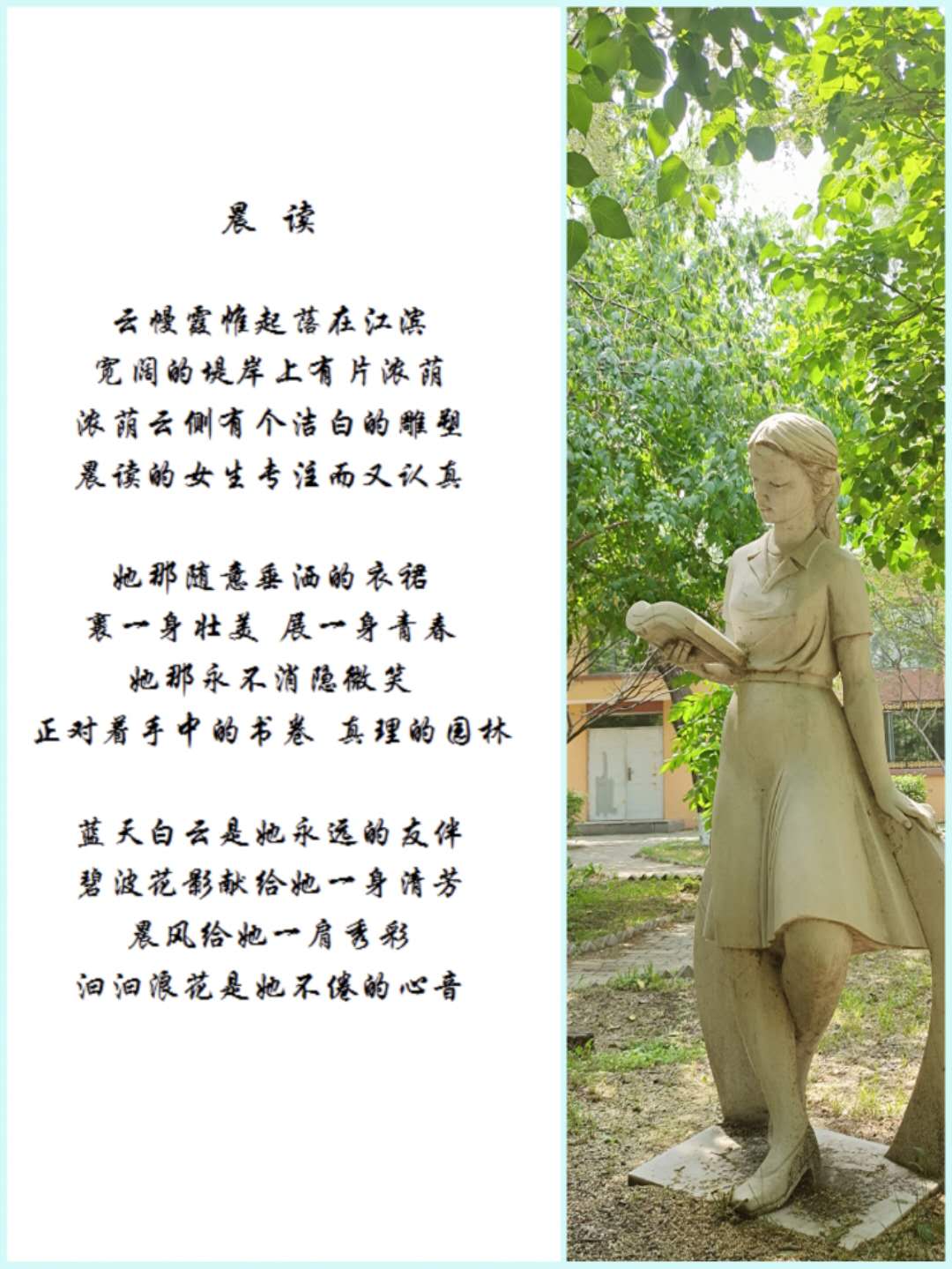 在晨光中校园内的一尊尊塑像,见证了你行色匆匆的脚步,倾听着你朗朗的读书声。看晨风吹过校园的每一寸角落,阳光的身影如这些丰沛的花朵,于朝阳初升晨雾渐隐的清晨,用饱满的精神去迎接崭新的一天。