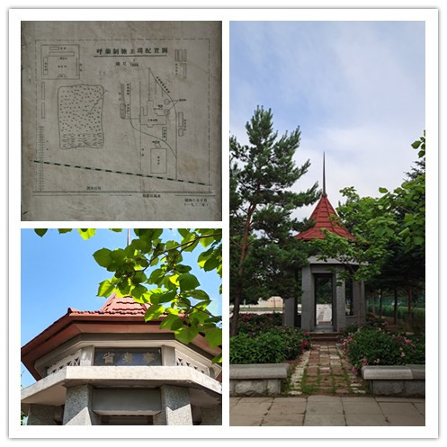 此亭镇定三方圆,原系哈尔滨糖厂。自公元1908年(清光绪三十四年)始建至抗战结束,无论技术、经济、安全皆受制于外人。曾遭沙俄军队之扰,德国商人之骗,日本霸强之吞并。现择东北沦陷期间(公元1933年,日本昭和八年)日本人所制《呼兰制糖工厂配置图》(时名),复制与石上,以示刻骨铭心。恕不设座,视者立而思之。