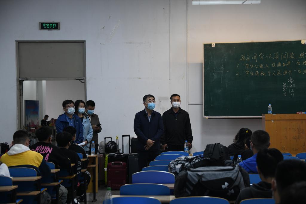 校党委书记周宏力,校长郝传波,校党委副书记赵科学、于成学,副校长张国华,在相关部门负责人的陪同下深入返校现场和各流程服务点,迎接学生返校,慰问返校学子和工作人员。校领导向同学们顺利返校表示欢迎,并详细询问了学生返校的相关情况,叮嘱学生们要注意自我防护,自觉遵守学校疫情防控相关规定,保持理性平和心态,积极投入到新学期的学习生活中去。