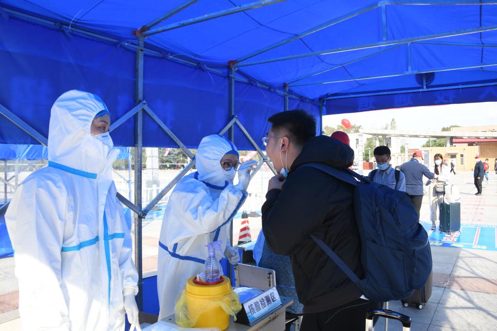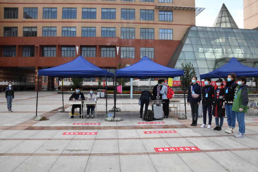 清晨6时,各车站接站点、入校通道、核酸检测、集中隔离、医疗服务、学生宿舍等各环节,机关党员“小红帽”先锋队和各个流程工作人员全部准备就绪,6时45分第一名返校学生由家长陪同送至校门前并按照指定的入校通道,通过查验身份、扫码、测温、消毒、核酸检测等流程后进入校园,拉开了秋季学期学生返校的序幕。