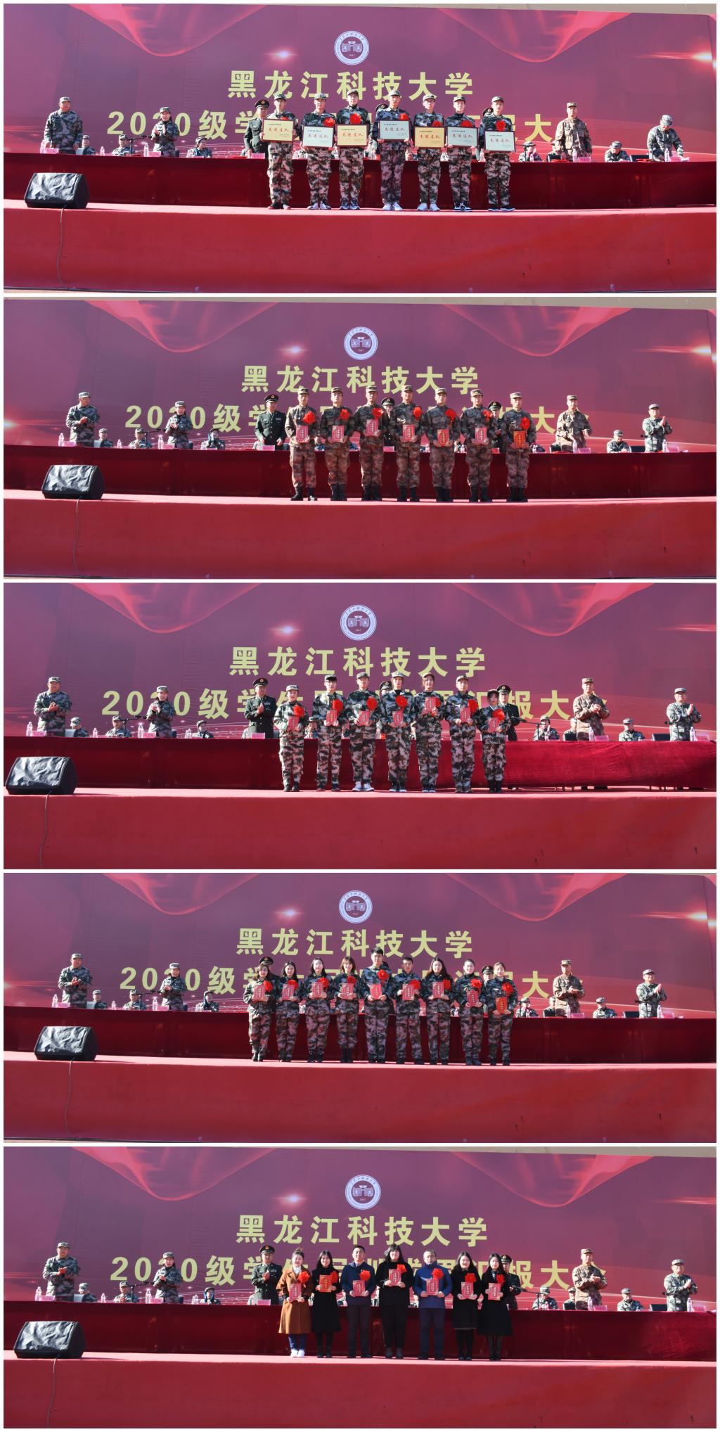 成果展示结束后,校党委副书记于成学代表学校向承训单位中国人民解放军31693部队赠授锦旗;学生军训团副团长宋志伟宣布了《华体官网网页版关于表彰2020级学生军事训练工作先进集体和先进个人的决定》;与会领导为受表彰的先进集体和先进个人代表颁发了荣誉奖牌和证书。