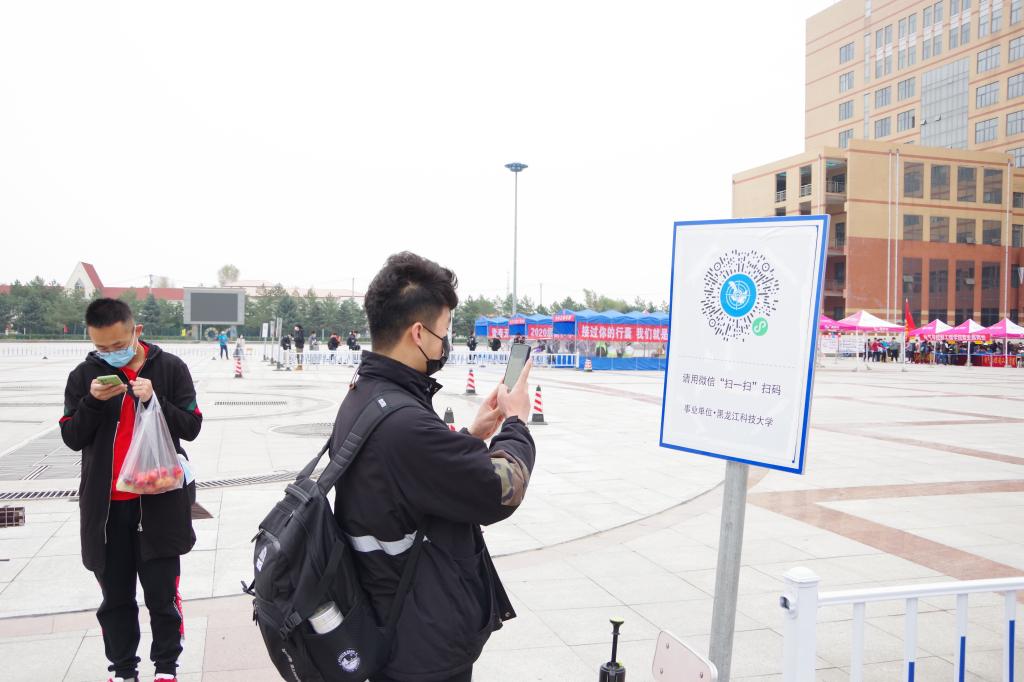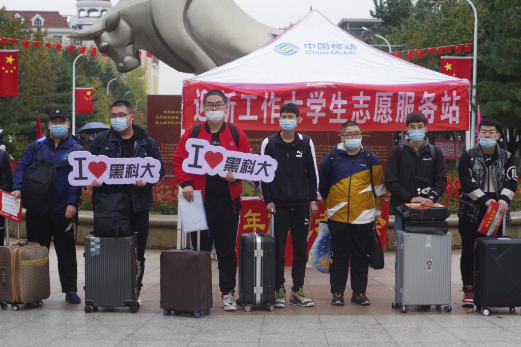 清晨6点,志愿者们手持标识牌,在哈尔滨站、哈尔滨西站、哈尔滨东站、太平机场设置接站服务台,全天做好接站准备。