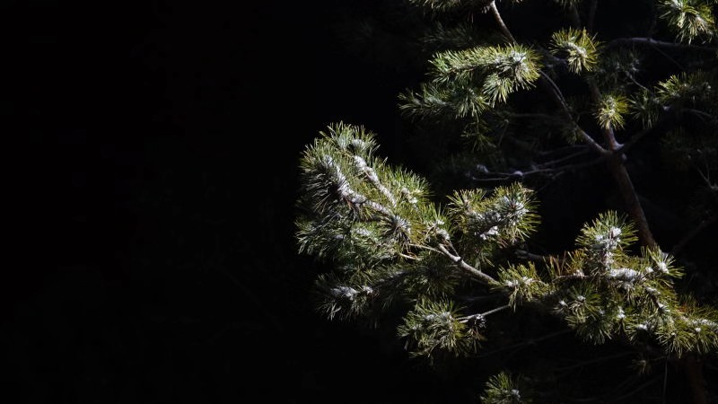 雪中琼树玉,松枝开“梨花”。没有一点防备,没有一丝顾虑,就这样,你来啦!