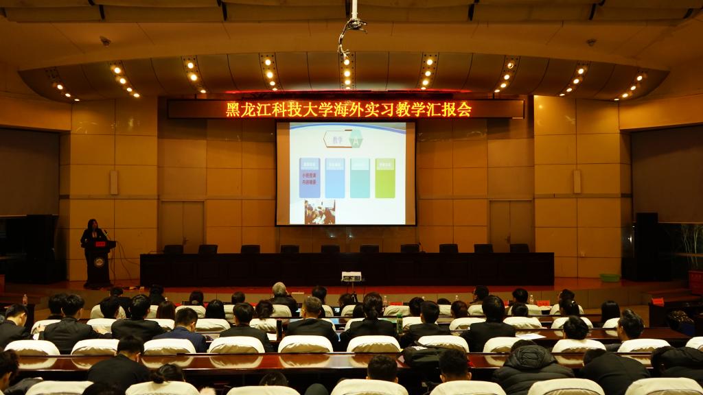 会上,张丹老师代表4名海外实习指导教师对赴俄罗斯海外实习项目进行了介绍,全面汇报展示了海外实习内容、实习效果、收获和感受。翁玥和赵韩云浩两位同学,结合亲身经历汇报了30名学生在俄罗斯的实习情况、日常生活、文化交流、体会和感受。三个人的汇报,内容丰富、图文并茂、情真意切,充分展示了师生良好的精神风貌和本次赴俄罗斯海外实习取得的成果,为学校进一步开展赴海外实习积累了经验。